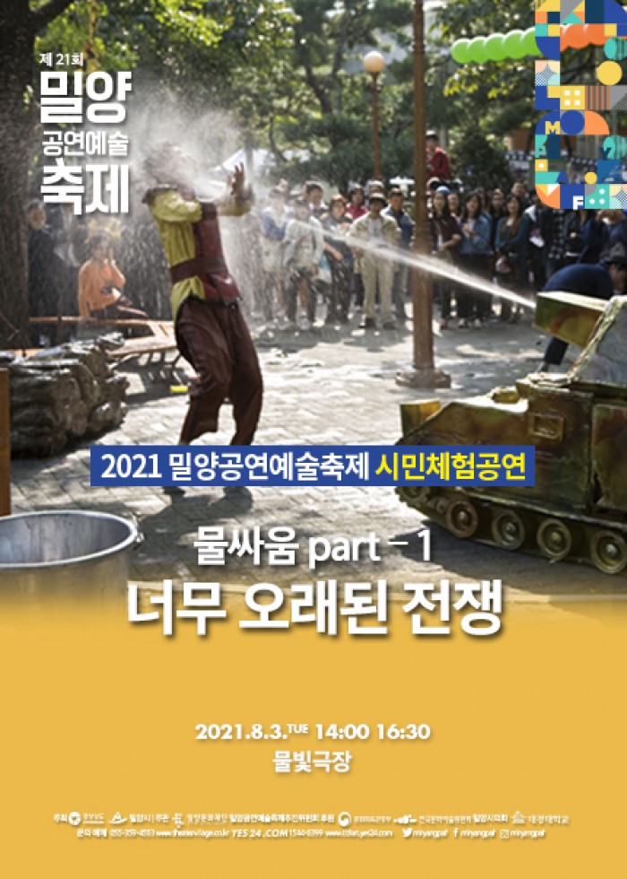 이 작품의 두 주인공인 풍이(많이 가진 자)와 엄이(물을 얻으려는 자)의 갈등이 바로 그 지점에서 시작되며 한없이 커져 전쟁의 형태까지 띠고 결국 둘 다 망하기에 이른다. 그걸 민초로 대변되는 ‘광대’ 캐릭터가 다 지켜본다. 내가 옳다, 내가 원하는 것은 옳다, 나에게 적대하는 너는 그르다! - 라고 외치는 오만과 이기심의 충돌이 21세기의 충돌이라고 생각한다. <물싸움>은 아이들 장난 같은 물싸움을 통해 그 무서운 충돌의 원인과 결과를 보여주려 한다. 그러면서 다음 세기 우린 어떻게 인류의 풍경을 이어가야 할까 - 그 희망도 찾아보고 싶었다면 비약일까.